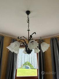 Vendo per cambio arredo lampadario in ferro battuto nelle tonalità del blu/oro con 8 punti luce in vetro bianco