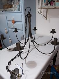 lampadario in ferro battuto lavorazione artigianale Toscana Larghezza cm76 altezza cm47 possibilità di avere anche tre lampade a muro stesse caratteristiche