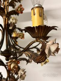 Decorato con fiori in porcellana,bracci curvi , con portalampada a candela