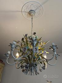 Vendo bellissimo lampadario in ferro, motivo floreale, fondo beige decorato a mano, con otto portalampade E14. Prezzo leggermente trattabile, ritiro a domicilio a carico dell'acquirente