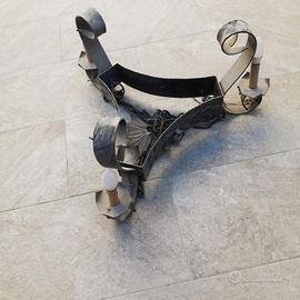Vendo lampadario come da foto in ferro in ottimo stato, costituito da telaio in ferro e 3 luci disposte a triangolo