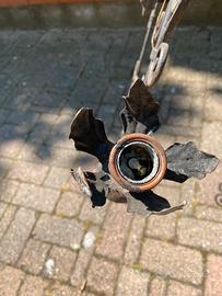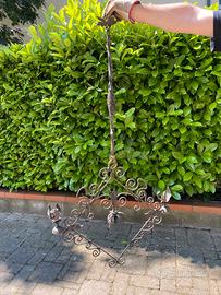 Lampadario in ferro lavorato nelle condizioni visibili in foto. Manca quslche petslo dei giori vome da foto