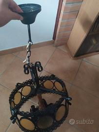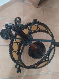 Lampadario in ferro nero e vetro giallo 4 luci Diametro 45 circa Altezza circa 55 + catena € 40,00