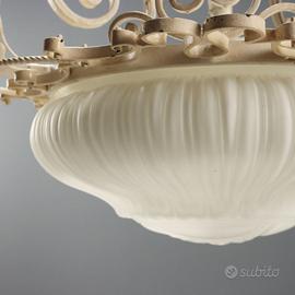 Lampadario in ferro battuto smaltato, lavorato a volute e riccioli. Tre luci sorrette da braccia mosse con applicazioni fogliacee, luce centrale ad illuminare il vetro opalino lavorato. Italia, inizio XX Secolo. Codice: ANILLA0307966 Condizione prodotto: Lampada che a causa dell'et e dell'usura pu richiedere interventi di restauro, e probabilmente presenta un impianto di elettrificazione non adeguato alle norme vigenti. Cerchiamo di presentare lo stato reale della lampada nel modo pi completo possibile con le foto. Qualora alcuni particolari non risultassero chiari dalle foto, fa fede quanto riportato nella descrizione. Misure: Largh.:59.00 cm, Alt.:84.00 cm, Prof.:0.00 cm QUESTO ARTICOLO E' DISPONIBILE PRESSO IL NEGOZIO DI CAMBIAGO Venditore: Barbara (dal Luned al Venerd : dalle 9:00 alle 19:00, Sabato: dalle 10:00 alle 19:00) Per maggiori informazioni contattateci su Whatsapp. Disponibile ad inviare video o foto integrative su Whatsapp Di Mano in Mano, Negozio dell'usato di Cambiago, via Castellazzo 8. Oltre 4000mq espositivi, tra usato, vintage, modernariato, antiquariato, arte e libri. Esplora il nostro portale mercatiniusato.org per scoprire centinaia di arredi usati.