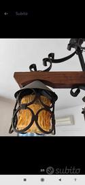 Vendesi lampadario di ottima qualità in ferro battuto, vetro e legno, originale anni '70. Stile vintage, rustico. Ritiro a carico dell'acquirente a Sant' Alessio con Vialone.