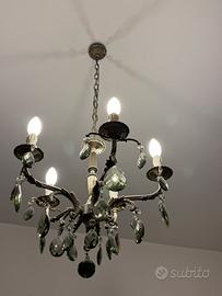 Lampadario con gocce in cristallo abbinato anche 2 abat jour (mancano in foto) da muro. Dimensioni : Diametro 45 cm Altezza 100 cm