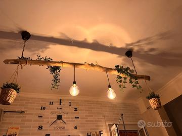 Regala calore e carattere alla tua casa con questo lampadario unico, realizzato a mano con materiali naturali e uno stile che unisce il rustico al moderno.