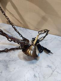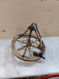Bellissimo lampadario artigianale in legno a ruota di carro.