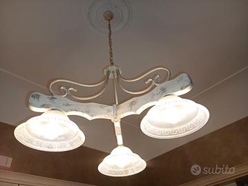 lampadario in legno con coppe in vertro