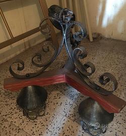 vendo lampadario in legno e ferro battuto