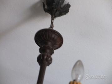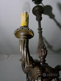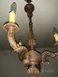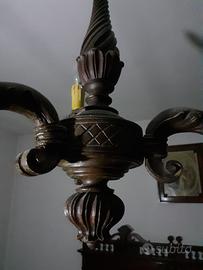 Lampadario antico in legno intagliato a mano. Altezza: 90 cm Diametro: 50 cm