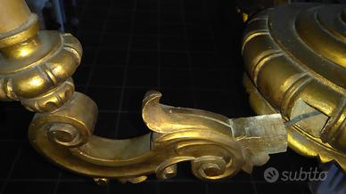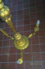 Antico lampadario a sospensione in legno dorato: finemente intagliato a mano, a 3 luci,