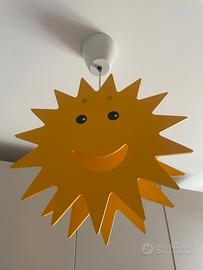 Splendido lampadario in legno per camera dei bambini come nuovo (la lampadina non è compresa). Smiley baby sole giallo legno.
