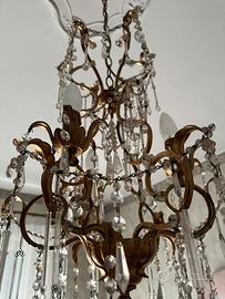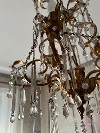 Lampadario in oro foglia e cristalli di boemia