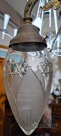 lampadario metà del 900 in ottone 4 luci nelle campane di vetro è incisa la Stella di David simbolo della civiltà e religiosità Ebraica. Diametro 45cm altezza 130cm possibile tagliare l asse per renderlo più corto....M&P Antichità siamo un negozio specializzato in antiquariato vintage e shabby vendita al dettaglio e all ingrosso scarichi settimanali oltre 500 articoli in negozio, abbiamo una vasta scelta di como comodini tolette armadi letti vetrine vetrinette credenze servanti angoliere librerie tavoli tavolinetti sedie poltrone poltroncine divani lampade lampadari tappeti scrivanie scrittoi secretere ribaltine consolle quadri cornici specchi cassapanche bauli oggettistica varia idee regalo e molto altro ci troviamo a Roma zona Castelverde via Massa San giuliano 26b POSSIBILITÀ DI CONSEGNA E SPEDIZIONE IN TUTTA ITALIA