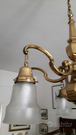 Lampadario in ottone a sei bracci (foto n. 1,2) impianto elettrico nuovo. L'estetica presenta delle macchie del tempo (foto n. 3,4) però il metallo è integro. Le campane in vetro, dato che non sono uguali (3 di una forma, 3 di un'altra) sono escluse nel prezzo del lampadario che è di 30 euro. Per chi vuole anche le campane, il costo complessivo sarà di 60 euro. Due paralume di cui: - Uno di color rosa antico già predisposto per l'aggancio alla catena o al cavo. Costo 5 euro Mis: larg 27; h. 7 cm senza l'aggancio - Una sfera color bianco Mis: diam 20 cm; diam foro 9,5cm costo 5 euro; Il prezzo dell'annuncio è riferito ad un solo paralume per entrambi 8 euro. Se sei interessato ad altri lampadari o oggetti d'arredo puoi cliccare sul mio nome e vedere i miei annunci online, chissà potresti trovare qualcos'altro di tuo interesse. Posso spedire. Il costo di spedizione dell'annuncio è riferito ai singoli paralumi, e c'è la possibilità di usufruire dell'offerta di spedizione di InPost a 0,99 cent quando questa viene proposta. Anche se in questo annuncio non compare l'offerta di InPost non preoccuparti ti dico io come fare o puoi trovare lo stesso articolo tra i miei annunci online con l'offerta. Per il costo di spedizione del lampadario come da foto con TuttoSubito è di 15 euro. Se si vuole risparmiare qualcosa nella spedizione del lampadario (circa la metà), si posso smontare i bracci che sorreggono le campane in vetro e fare meno volume, quello che determina il costo della spedizione. Per la consegna a mano è possibile a Roma in zona Monte Cervialto (per il lampadario) Piazza Bologna Monte Cervialto e Jonio per i paralumi Per altre informazioni non esitate a contattarmi.
