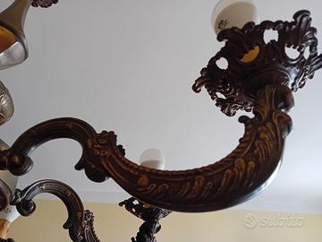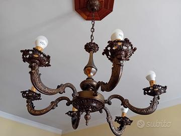 2 Lampadari in ottone con portalampade con grifoni. Uno grande con 12 portalampade, l'altro più piccolo con 6 portalampade. Valuto offerte