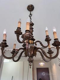 Lampadario in ottone bronzato massiccio