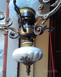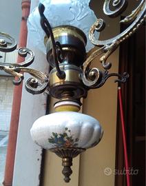 Lampadario in Ottone, Ceramica e Vetro