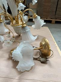 lampadario in ottone con vetri satinati a fiore