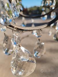 Vendo lampadario in ottone con cristalli. Li ha quasi tutti, mancano due pendenti lunghi e una serie di pendenti su un braccio. Inoltre una goccia è scheggiata, si vede tutto in foto. I ricambi si trovano facilmente ai mercatini dell'usato! non spedisco.