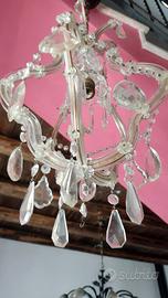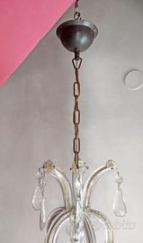 LAMPADARIO IN OTTONE e VETRO e BRINDOLI - 1 luce - Vintage - Da restaurare