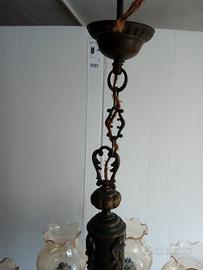 Lampadario in ottone e Vetro inciso 8 bracci misure altezza totale 90 cm. larghezza 70 cm. perfettamente funzionante cappe in vetro smontabili ritiro su Grosseto o spedizione con imballo speciale.