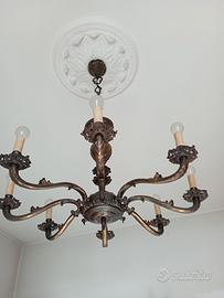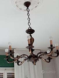Lampadario in ottone lavorato
