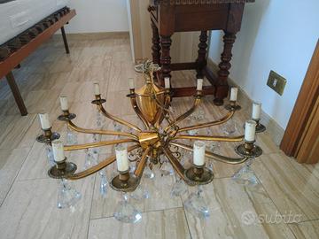 Vendo lampadario in ottone con gocce di vetro. prezzo trattabile