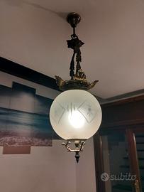 Bellissimo lampadario in ottone con boccia in vetro lavorata