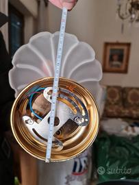 Lampadario in ottone lucido con 9 lampade e altrettante conchiglie in vetro di murano che diffondono una bella luce con due applique uguali Come nuovo