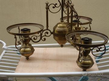 Lampadario in ottone, tre punti luce