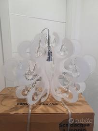 lampadario in plexiglass, bianco satinato con pendini in vetro trasparente..