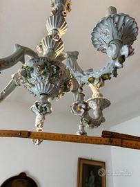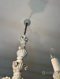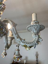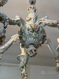 Vendo lampadario in porcellana, in stile Capodimonte, noto per le sue delicate decorazioni floreali tridimensionali. Materiale: Porcellana finemente lavorata e dipinta a mano. Stile: Decorazioni floreali rococò con rose e piccoli fiori applicati. Struttura: Solitamente dotata di bracci in porcellana o metallo rivestito Ritiro a Carovigno