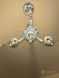 Vendo elegante lampadario in porcellana decorata a mano con motivi floreali in rilievo e dettagli dorati con 3 luci. Stile classico/vintage, molto raffinato e decorativo, ideale per salotto, sala da pranzo o camera da letto.