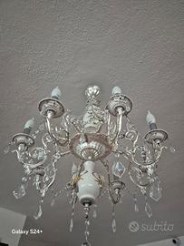 vendesi lampadario in porcellana di capodimonte stile classico moderno con swarowsky a 8 luci. e abbinato una applique a due luci. tutto per 250 euro trattabile.