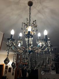 Vendo coppia di lampadari(anche singolarmente) a bracci in stile classico, struttura in metallo color bronzo con decorazioni floreali e pendenti in cristallo molato, a goccia e a prisma.