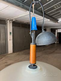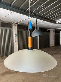 Vendo elegante lampadario in vetro di Murano, realizzato con diffusore doppio in vetro satinato e dettagli in legno.