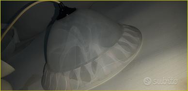 Lampadario a sospensione interamente in vetro, con supporto a lampade di max 60W.