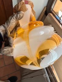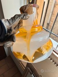 lampa soffitto in vetro di qualita (anni 60?) Alto circa 31 cm, largo circa 26 cm (il nastro marrone é per tenere le due parti insieme vanno comprati lol e viti e le parti eletriche)