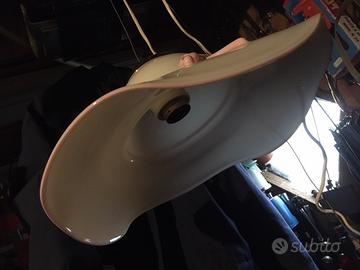 Lampadario in vetro opalino a forma di cappello Belle Epoque con fiocco rosa; diametro 40cm circa. Scambio a mano in zona sud di Padova.