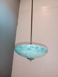 Vendo lampadario in vetro di colore azzurro blu a due lampadine vintage d'epoca