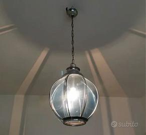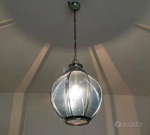 Lampadario in vetro a lanterna, con catena. Notevole effetto di luce come visibile in foto. Originale anni 60