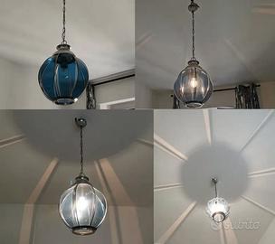 Lampadario in vetro Blu vintage anni '60 lanterna