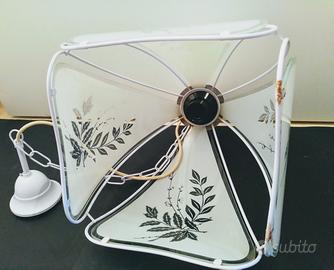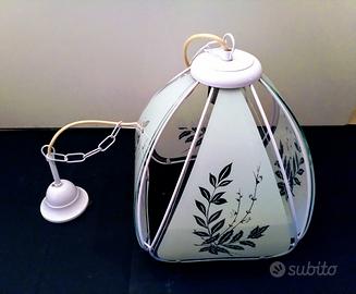 Semplice ma elegante lampadario in vetro ideale per camere da letto o ingressi, alto 30cm. e largo 23, ad euro 20,00. Presenta piccoli punti di ruggine come da foto.