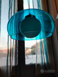 Lampadario in vetro con boccia in vetro e applicazioni in acciaio per info contattatemi