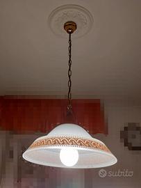Lampadario ad una luce in vetro decorato in stile classico. Ancoraggio al soffitto con catena. Elegante e pratico, ideale per arredare ogni ambiente della casa. Smontaggio e trasporto a carico dell'acquirente.