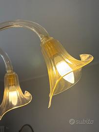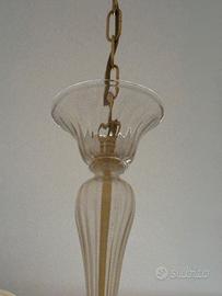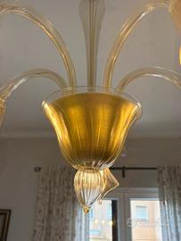 Lampadario di Murano in condizioni perfette, Cinque bracci e vetro con sfumatire dorate