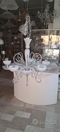 Lampadario in vetro di Murano 5 luci bianco