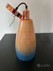 Lampadario in vetro soffiato di Murano (certificato non disponibile) altezza 40 cm colore arancio/azzurro. Condizioni impeccabili